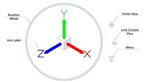 : A clickable icon to quickly get back to the HOME view. The isometric view is the default Home view. Users can define the current scene view as the Home view by using the Set As Home Viewpoint option in the Menu. - Lock/Unlock Current View -