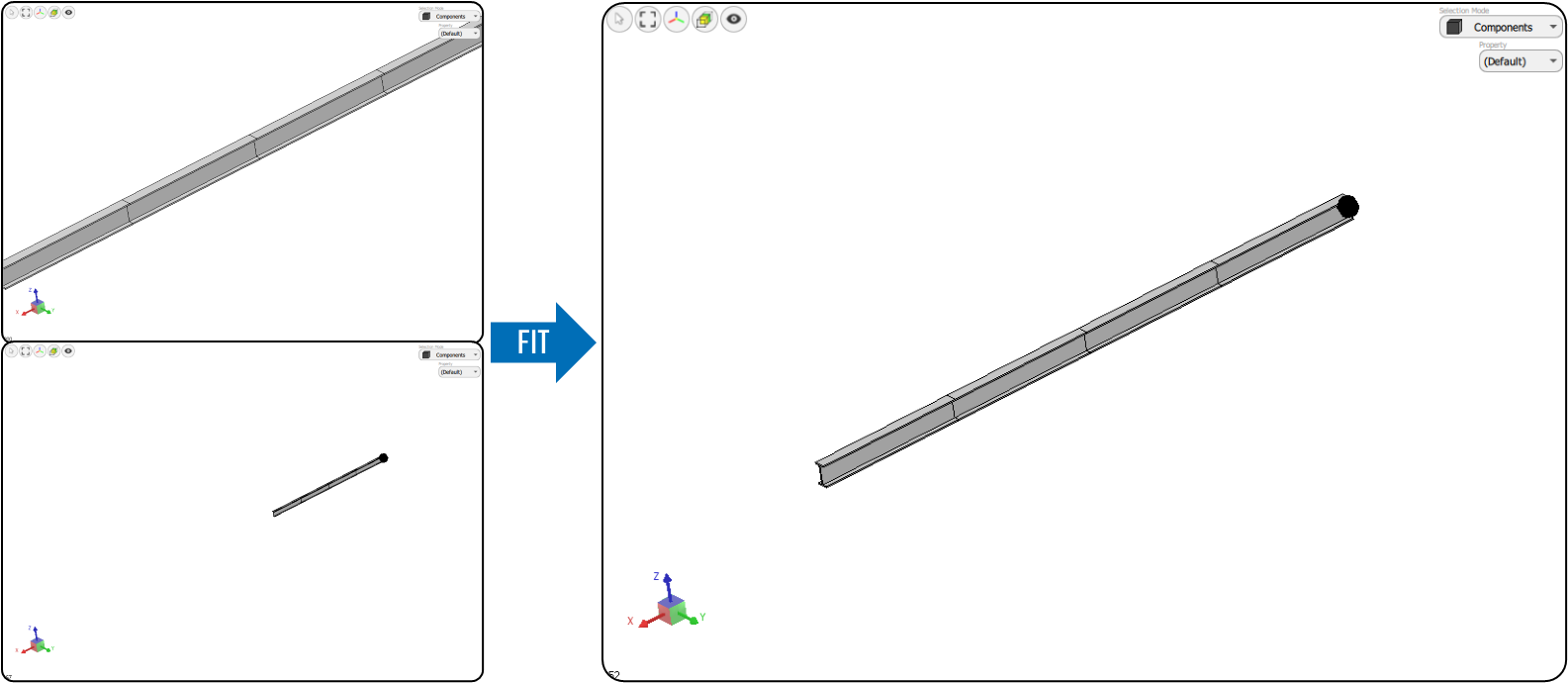 The Fit tool is simple to use, when the model is too large or small compared to the working window, just click on the Fit icon to fit the model to the screen with a reasonable scale.