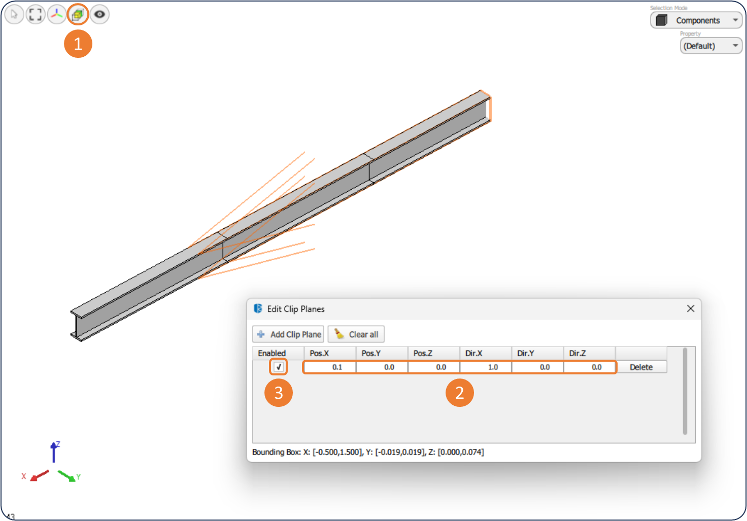 Figure 3.7. Steps to use the Clip Plan tool