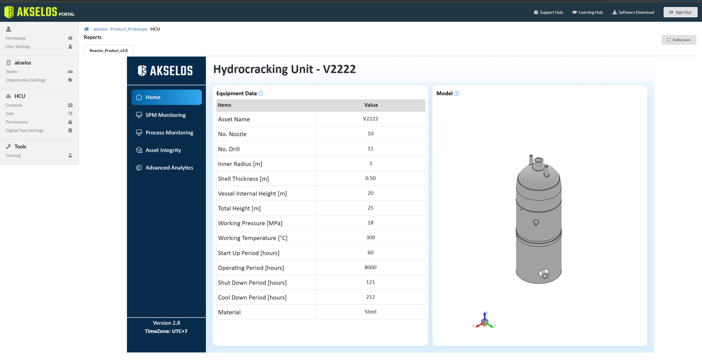 Figure 3.1: Hydrocracking Reactor Dashboard on AKSELOS Portal.