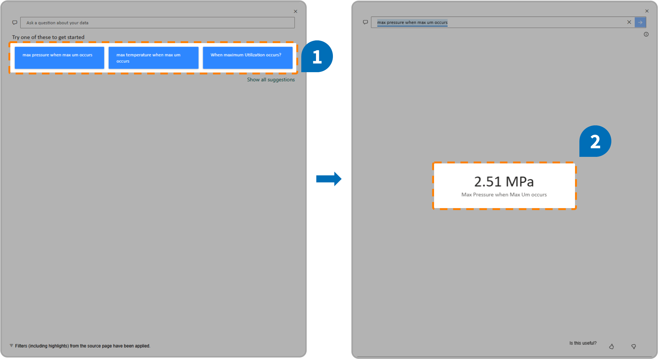 1. KPI Cards: These cards summarize the current maximum stress and its location, giving engineers a quick indication of the most critical area at the selected time range.