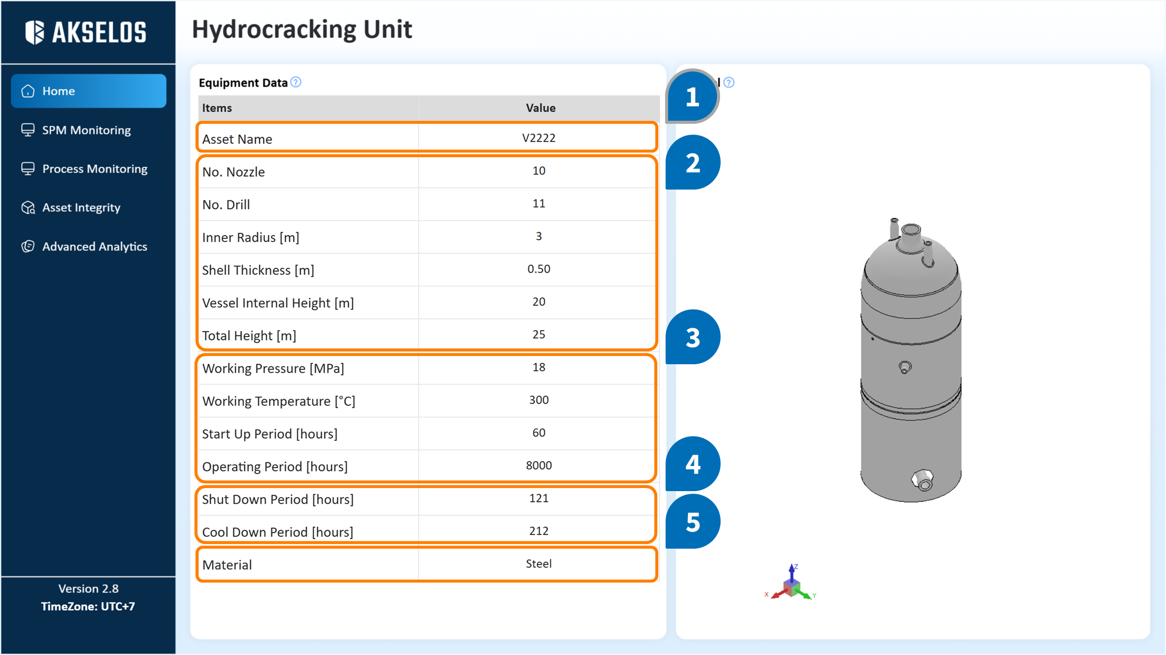 Equipment Data Card: This table presents a consolidated view of the asset’s fundamental attributes. The details are defined within the model; refer to User Manual Part 1: HCU Reactor – Automation Wizards for more information.